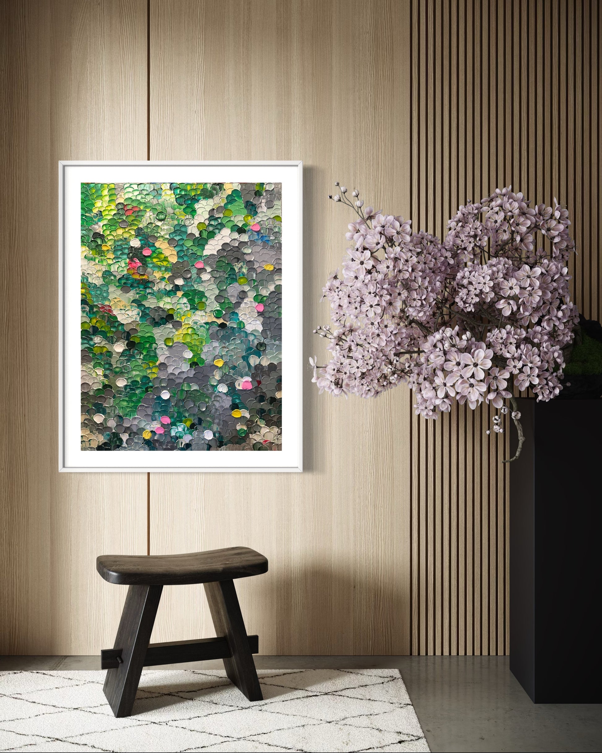 This piece captures the lush dreamscape found in Kyoto’s Arashiyama ward. Lose yourself in the serenity of nature, where its configuration tells a story of balance, beauty, and peace.